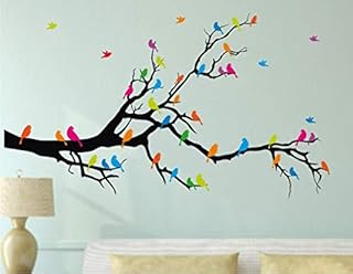 Heaven Decors PVC Vinyl Nature Tree With Colourful Birds Wall Sticker, 47.24 x 0.39 x 26.77 inches, Multicolour