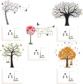 Decopix 'Nature - Tree - Birds - Colorful - Decorative Wall Sticker Combo Pack for Switch Panel Board, Laptop, Fridge.' - Sm4067 (PVC Vinyl - Set of 5)