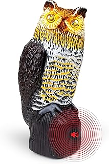 Owl Decoy Bird Deterrent - Scarecrow Fake Owls to Keep Birds Away and Bird Control Garden Owl w/Solar Powered Owl Eyes and Noise to Scare Birds