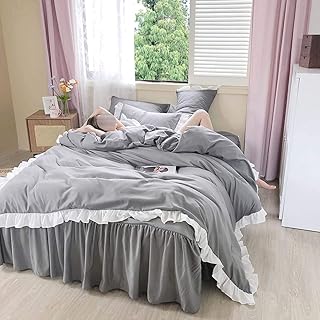 布団カバー 4点セット 綿100% ダブル 寝具カバー グレー シンプル 姫系 可愛い 洋式・和式兼用 ベッドカバー 掛け布団カバー ベッドスカート 枕カバー シーツカバー 肌に優しい フリル付き 布団用 洗い替え
