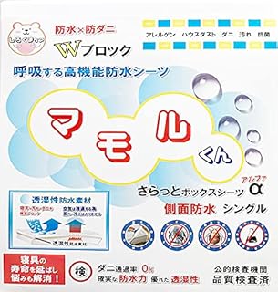 側面まで 防水 さらっと 防水ボックスシーツ 防水シーツ αシリーズ (シングル 100×200cm) 汚れ ダニから布団を守る!蒸れを逃がす【国内公的検査機関で品質検査済(防水性 透湿性 ダニ 通過率 0%)】 【防水×防ダニW効果】【透湿性防水素材で蒸れは逃がして汚れはブロック】【アレルゲン ハウスダストもしっかりガード!】 寝汗 ニオイ 汗ジミ 黄ばみ カビ 汚れ防止 アレルギー対策 おねしょシーツ 介護シーツ ワンタッチシーツ さらっと防水ボックスシーツ 脱水 乾燥機 使用可 (シングル)
