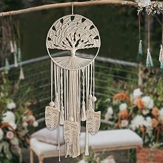 O-heart ボーホー ツリーオブライフ ドリームキャッチャー マクラメ 壁掛け ドリームキャッチャー 羽根の葉付き 大きな織物 ボヘミアン ドリームキャッチャー ウェディングパーティー 記念品 寝室 保育園 カフェ ジプシーの装飾に