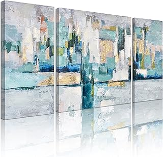 Sdmikeflax ティールブルー 壁装飾 3ピース 壁アート 48インチ x 24インチ 大判 壁画アート 自宅の壁用 ラップ 抽象キャンバス ウォールアート リビングルーム 寝室用