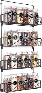 SWOMMOLY 壁取り付けスパイスラック 4パック 大容量スパイスラック 積み重ね可能 折りたたみ式オーガナイザー ブラック Lサイズ