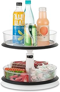 Hanobe 2段 Lazy Susan オーガナイザー 360度回転 調節可能なコスメティックストレージディスプレイケース クリアプラスチック ターンテーブルキャビネットオーガナイザー スパイスラック パントリーキッチン 冷蔵庫 カウンタートップ メイクアップ