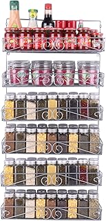 SWOMMOLY 壁取り付けスパイスラック 大容量スパイスラック 積み重ね可能 折りたたみ式オーガナイザー シルバー Lサイズ
