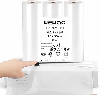Wevac 真空パック袋 真空パックロール 28×500cm 3本いり 真空ぱっくん 替えロール 真空袋 自由にカット エンボス加工 脱気しやい 密閉性 野菜 お米 お魚 犬のフード 鮮度長持ち 食品保存 PE+PA安全素材 低温調理 真空パック機 真空シーラー 用 業務用 家庭用