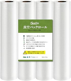 Deefre 真空パックロール 20×600cm×4本 真空パック機専用ロール 真空包装袋 PE+PA安全素材 BPAフリー フードシーラー 食品保存 低温調理 家庭用 業務用