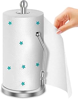 Hystun シングルティアペーパータオルホルダー カウンタートップ スタンディングペーパータオルホルダー ステンレススチール テンションアーム ペーパータオルホルダー 簡単に剥がせるペーパーロールディスペンサースタンド キッチンカウンタートップ&バスルーム用
