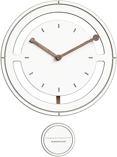Pendulum ラウンドウォールクロック ホームデコ 電池式 静音 カチッと音が出ない 大きなスタイリッシュな木製壁掛け時計 リビングルーム ベッドルーム キッチン オフィス用 (ホワイト、14インチ)