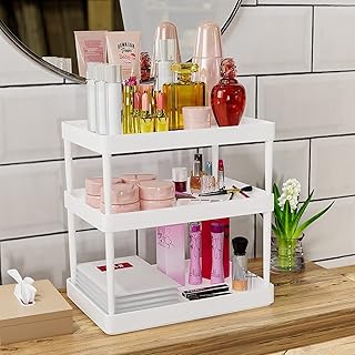 JENDEHO バスルームストレージシェルフ ベッドルーム 3段デスクコスメティックホルダー キッチン 積み重ね可能 カウンタートップ デスクアクセサリー ワークスペースオーガナイザー (ホワイト)