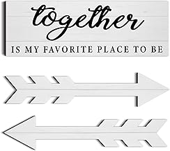 3ピース Together 木製壁装飾 素朴な木製サイン ファームハウス 壁プリントサイン 木製矢印壁装飾 リビングルーム ベッドルーム キッチン 保育園 オフィス 結婚式用 (ホワイト)