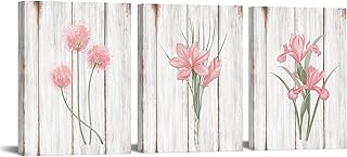 Artsbay 3ピース ピンクフラワー ウォールアート 花柄 レトロ 背景 絵画 ジークレー モダン 枠張り ギャラリーラップ ボタニカル 壁 装飾 アート リビングルーム ベッドルーム オフィス 12インチ x 16インチ x 3インチ