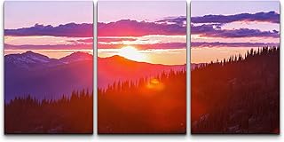 wall26 キャンバスプリント ウォールアート セット 紫の空 森の中の夕暮れ 自然 自然 自然 自然 写真 リアリズム 素朴な風景 リラックス/穏やかなマルチカラー ダーク リビングルーム 寝室 オフィス用 - 16インチ x 24インチ x 3インチ