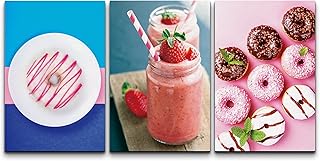 wall26 キャンバスプリント壁アートセット つや消しドーナツ&ストロベリースムージー フルーツデザート 写真 リアリズム グラム クローズアップ 楽しいマルチカラー ウルトラ リビングルーム 寝室 オフィス用 - 16インチ x 24インチ x 3インチ