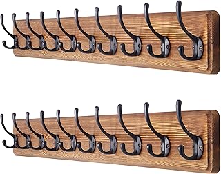 SKOLOO 素朴な壁掛けコートラック 16インチ 穴から穴まで 2個セット 松材製コートフックハンガー 衣類やローブ、タオル、コートを吊るすためのフック10個