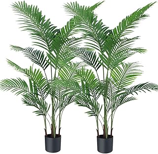 Ferrgoal 人工植物 アリカ ヤシの木 植物 ポット入り フェイクイエロー ヤシの木 5.2フィート 人工植物 家庭 オフィス 屋内 屋外 モダン装飾 新築祝い ギフト 2個パック