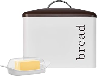 Home & Abode パンボックス キッチンカウンタートップ用 Lサイズ ホワイト ブラウン蓋付き 金属 農家 キッチン装飾 パン収納