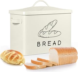 NIKKY HOME 特大省スペースブレッドボックス キッチンカウンタートップ用 - 2つのローブを収納可能 - ファームハウス ベーカリー ブレッドボックス パン容器 収納コンテナホルダー 大容量 ホワイト