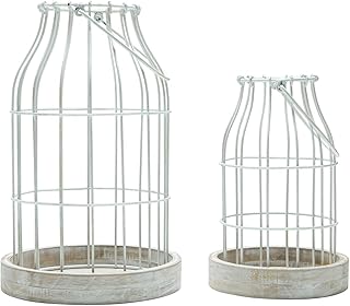 NIKKY HOME ファームハウス キャンドルホルダー ワイヤーメタルクローシュセット 木製ベース 素朴なユニークなマントル装飾に最適 2個セット アンティーク調ホワイト