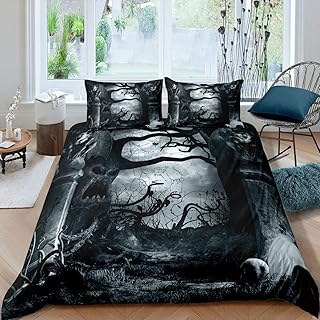 Erosebridal ツリー寝具セット クイーンサイズ ハロウィンホラーテーマ 掛け布団カバー ゴシック 不気味な掛け布団カバー ティーン用 大人 男性 枝 グレー ツリーテラー キルトカバー 色あせ防止 ホーム装飾