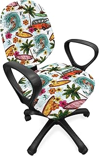 Ambesonne オーシャンオフィスチェアースリップカバー ハワイサーファー 波状 深海 レトロスタイル ヤシの木 花 サーフボードプリント 保護ストレッチ装飾ファブリックカバー マルチカラー
