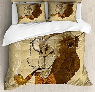 Ambesonne アニマル布団カバーセット ポップアート ヒップスター キャメル モノクル ヴィンテージ ユーモア 楽しい クール コンピューター グラフィック 装飾寝具3点セット 枕カバー2枚付き カリフォルニアキング ブラウン タン