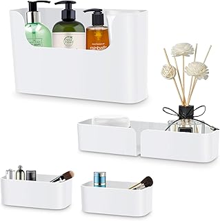 Ibnotuiy ホワイトフローティングシェルフ 壁取り付け ドリル不要 粘着プラスチック 防水 棚 オーガナイザー シャワーキャディ キッチン バスルーム 寝室用 (4個セット)