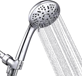 高圧ハンドヘルドシャワーヘッド MCAMO 9種類のスプレー設定 ステンレスホースとブラケット付き クローム仕上げ